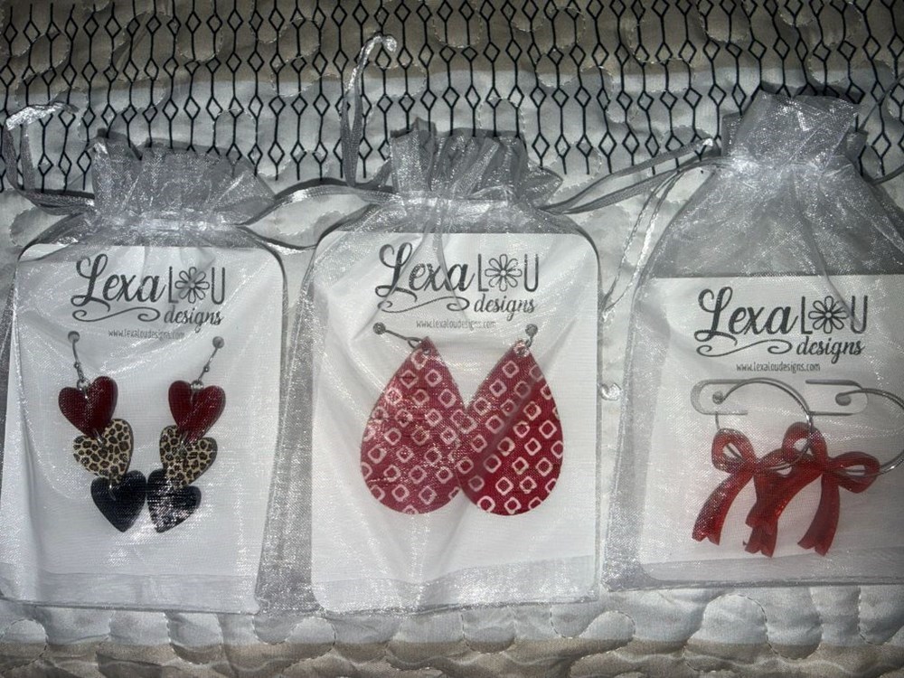 Valentines jewelry bundle includes three pair of hand-made Valentines earrings by Lexa Lou Designs